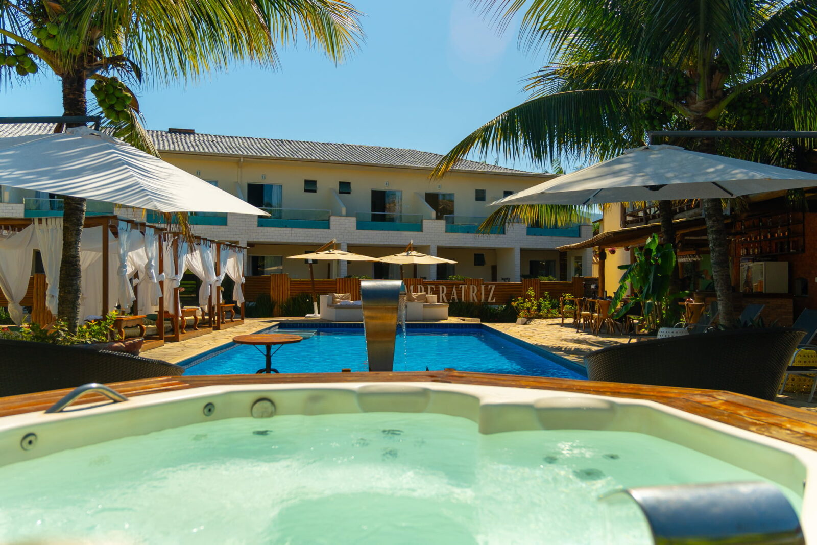 O Imperatriz Paraty Hotel oferece momentos inesquecíveis na Suíte Júnior com Piscina Privativa. Confortável, com espaço interno de cerca de 41 m², acomoda até 3 pessoas e conta com todos os itens do melhor padrão de hotelaria, além de uma piscina privativa que é um charme, oferecendo conforto, privacidade e todo glamour.